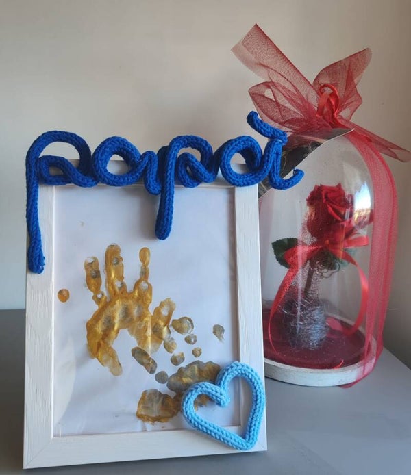 Cornice realizzata interamente a mano in tricotin, perfetta per custodire i tuoi ricordi più belli o come idea regalo originale.